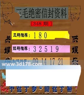 福彩3d第348期三毛绝密信封资料图详解:三码推荐:180