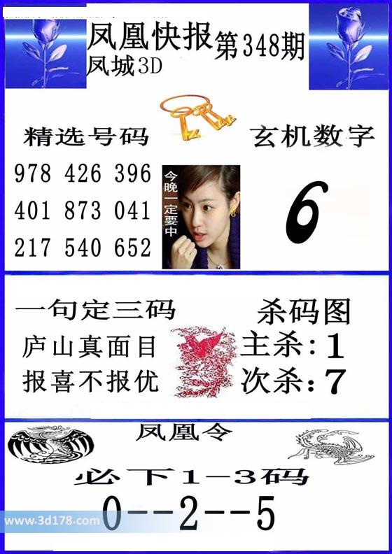 福彩3d凤凰快报图第16348期精选号码推荐: