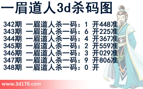 该一眉道人3d杀码图由3d之家3d图库频道原创,仅供彩民参考,温馨提供。