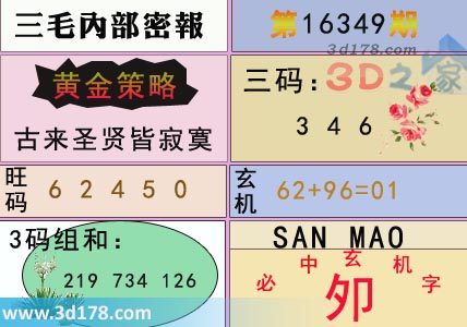 3d之家三毛图库第16349期三毛内部密报图详解: