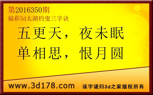 福彩第2016350期3d太湖字谜:五更天,夜未眠,单相思,恨月圆
