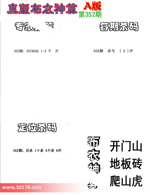 布衣神算:开门山,地板砖,爬虎山。