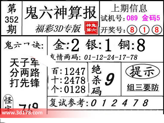 3d第16352期鬼六神算报为您推荐鬼六口诀: