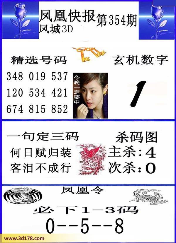 福彩3d凤凰快报图第16354期精选号码推荐: