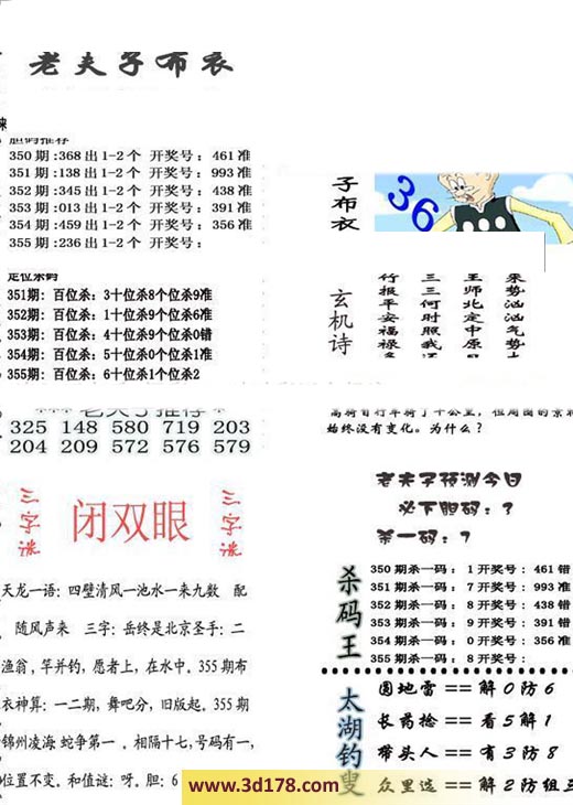 福彩3d第2016355期老夫子布衣图详情: