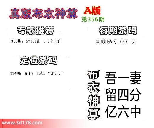 3d之家布衣图库之布衣神算图第2016356期详解: