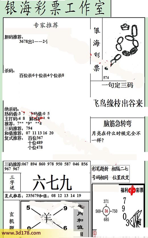 复式推荐:百位:367 十位:489 个位:478