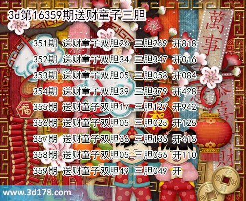 356期 送财童子双胆05 三胆025 开125