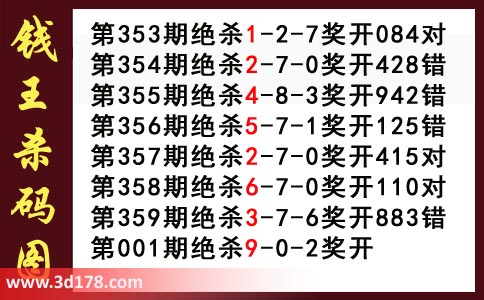 近期3d钱王杀码具体详情: