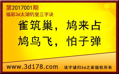 福彩3d第2017001期太湖图库解字谜详解: