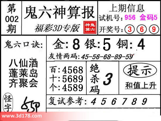 3d第17002期鬼六神算报为您推荐鬼六口诀: