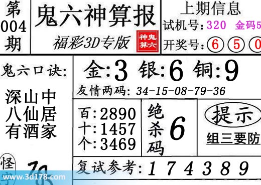 3d第17004期鬼六神算报为您推荐鬼六口诀: