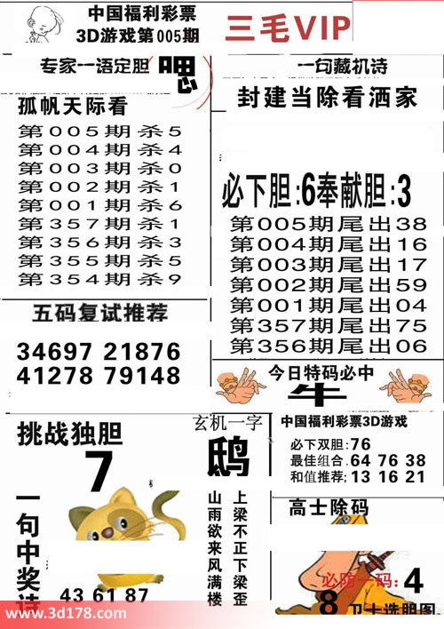 3d第2017005期三毛VIP详解: