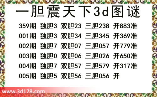 本期一胆震天下3d图谜