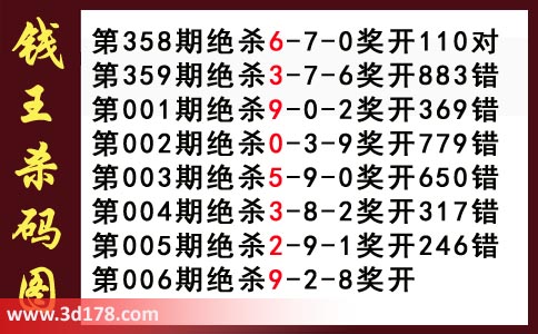 近期3d钱王杀码具体详情: