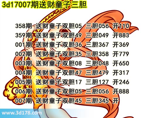 下面我们一起来回顾一下3d之家胆码图送财童子三胆近期推荐详情: