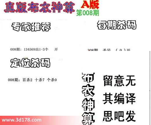 3d之家布衣图库之布衣神算图第2017008详解: