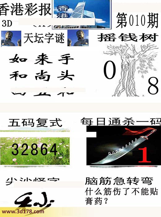 3d香港彩报第17010期摇钱树:本期3d香港彩报图详情如下:天坛字谜:如来手 和尚头 四五和摇钱树:0 8五码复式:23468每日通杀一码:1脑筋急转筋:什么筋伤了不能贴膏药?该香港彩报由3d之家3d图库频道原创,仅供彩民参考,温馨提供。