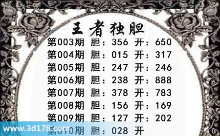 3d之家第010期王者独胆图推荐胆码: