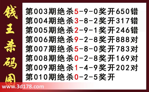 近期3d钱王杀码具体详情:
