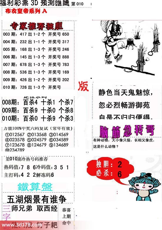 福彩3d第2017010期布衣皇帝A版布衣专家独家推荐: