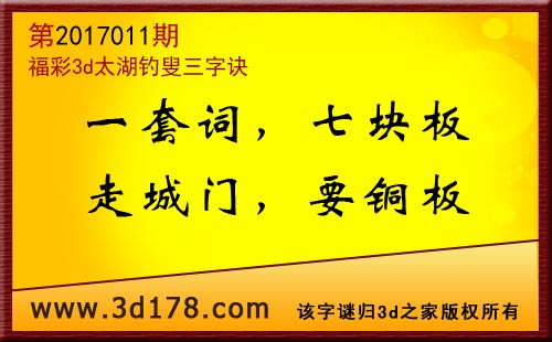 第17011期3d太湖字谜解太湖钓叟三字诀: