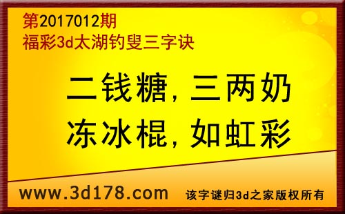 第17012期3d太湖字谜解太湖钓叟三字诀: