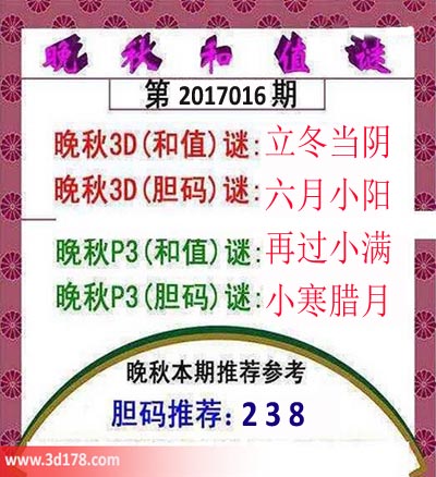 晚秋P3(和值)谜:再过小满