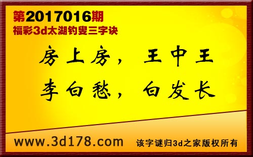 第17016期3d太湖字谜解太湖钓叟三字诀: