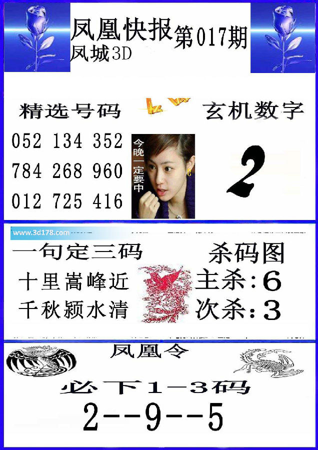 福彩3d凤凰快报图第17017期精选号码推荐: