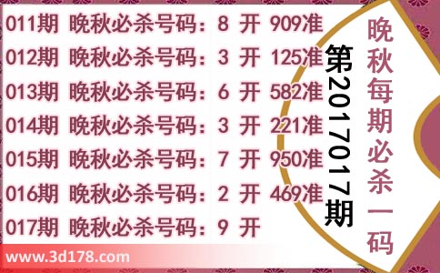 3d第20170017期晚秋杀码图: