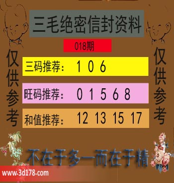 福彩3d第018期三毛绝密信封资料图详解: