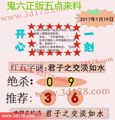 福彩3d第2017019期鬼六五点来料: