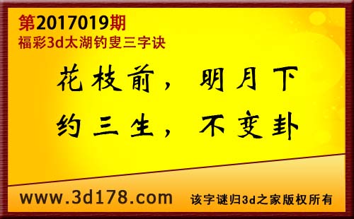 第17019期3d太湖字谜解太湖钓叟三字诀:
