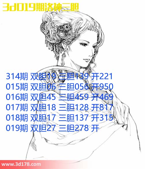 胆码图库3d第2017019期洛神三胆图: