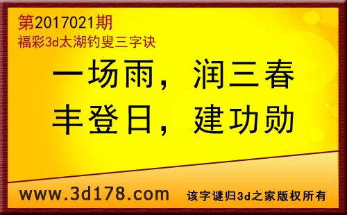 第17021期3d太湖字谜解太湖钓叟三字诀: