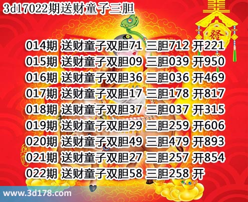 胆码图库3d第2017022期送财童子图: