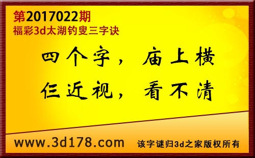 第17022期3d太湖字谜解太湖钓叟三字诀: