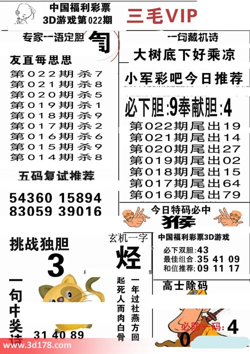 3d第2017022期三毛VIP详解:
