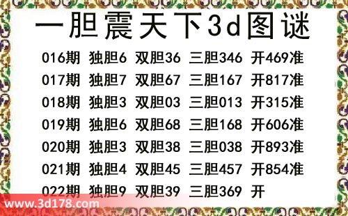 本期一胆震天下3d图谜