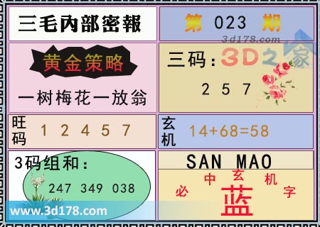 3d之家三毛图库第17023期三毛内部密报图详解:黄金策略:一树梅花一放翁