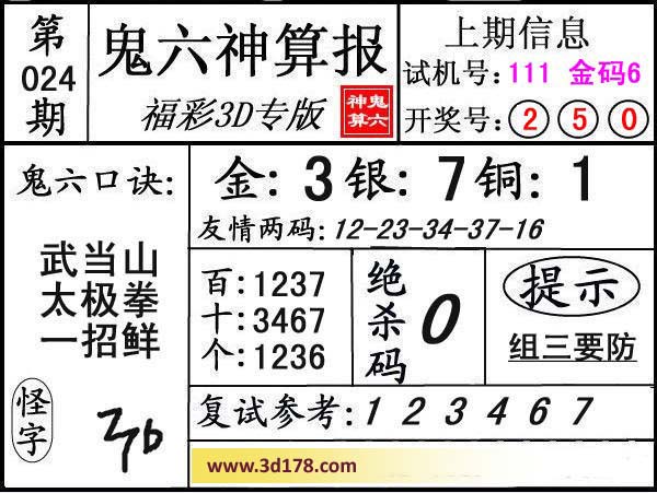3d第17024期鬼六神算报为您推荐鬼六口诀: