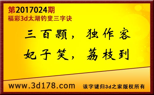 第17024期3d太湖字谜解太湖钓叟三字诀: