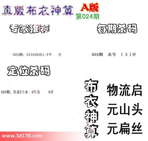3d之家布衣图库之布衣神算图第2017024详解: