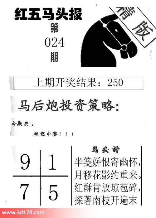 3d第2017024期红五马头报本期马头诗详解: