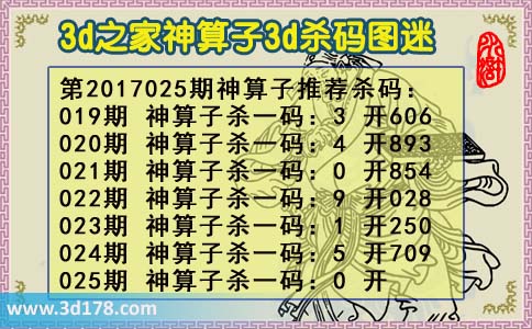 3d第2017025期神算子杀码图: