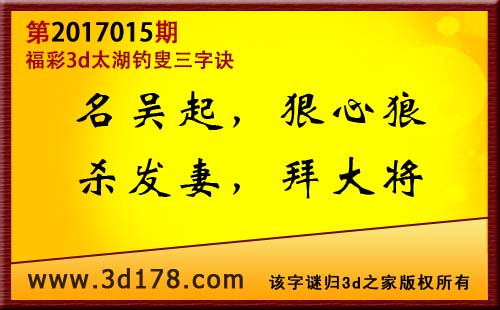 第17025期3d太湖字谜解太湖钓叟三字诀: