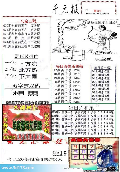 福彩3d第2017025期布衣千元报图详情分析如下: