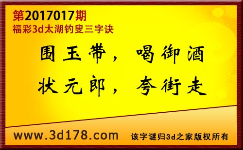 第17027期3d太湖字谜解太湖钓叟三字诀: