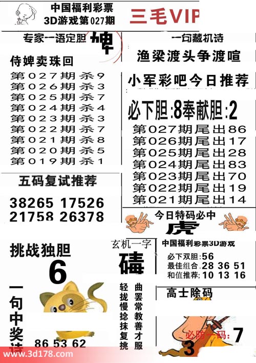 3d第2017027期三毛VIP详解: